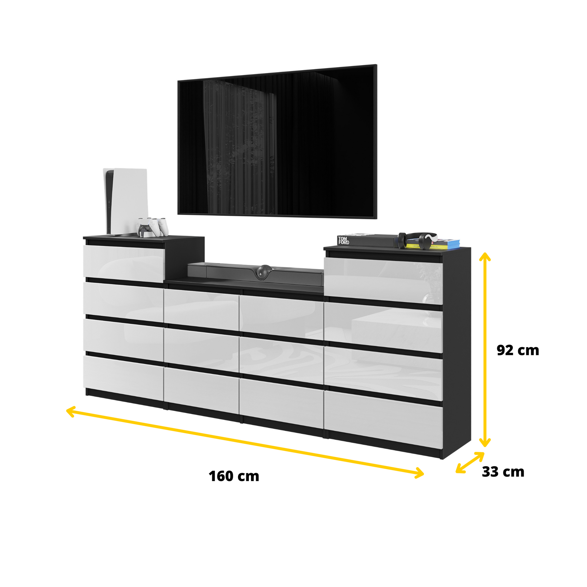 GABRIEL - Kommode / Sideboard mit 14 Schubladen (4+6+4) - Schwarz Matt / Weiß Gloss