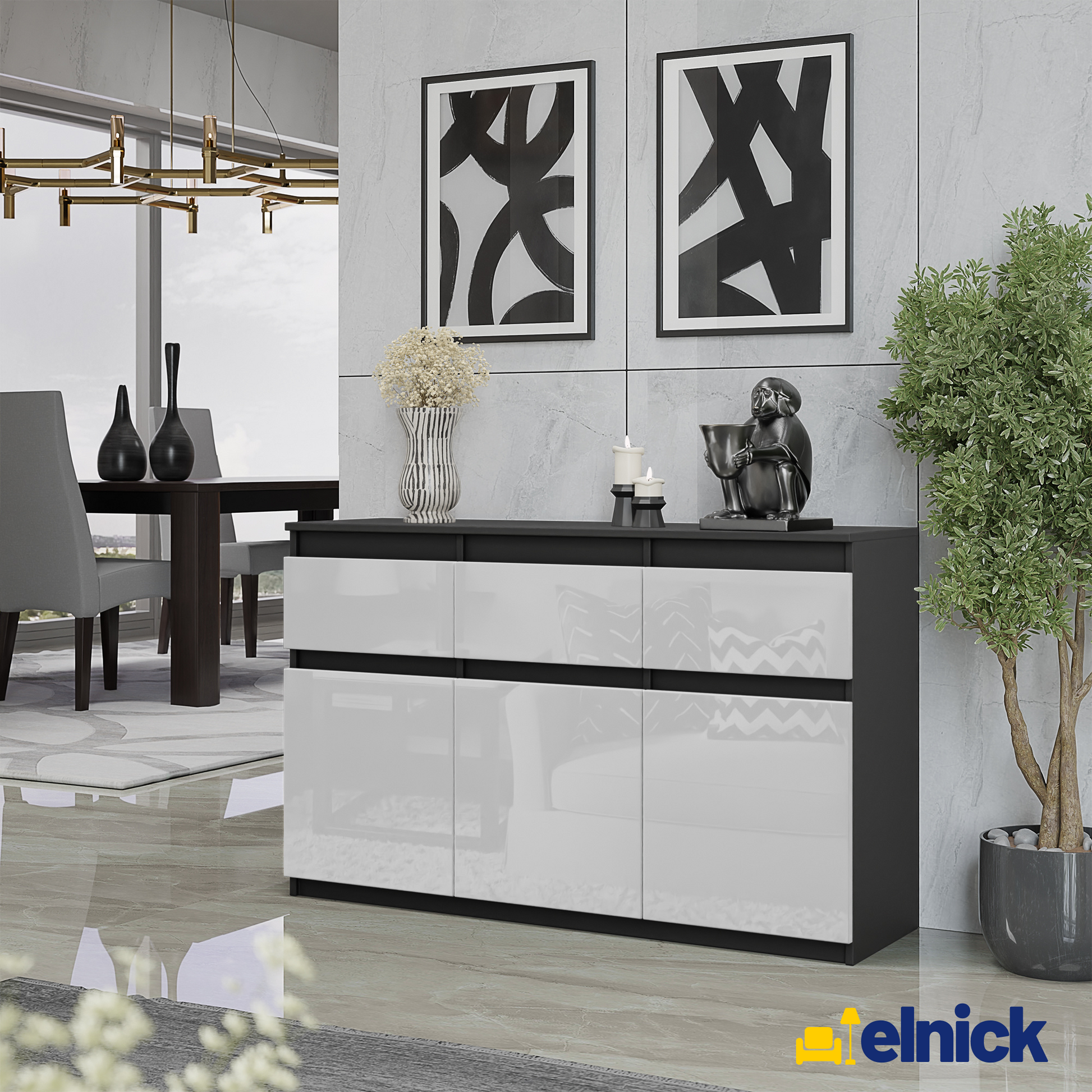 NOAH - Kommode / Sideboard mit 3 Schubladen und 3 Türen - Anthrazit Grau / Weiß Gloss