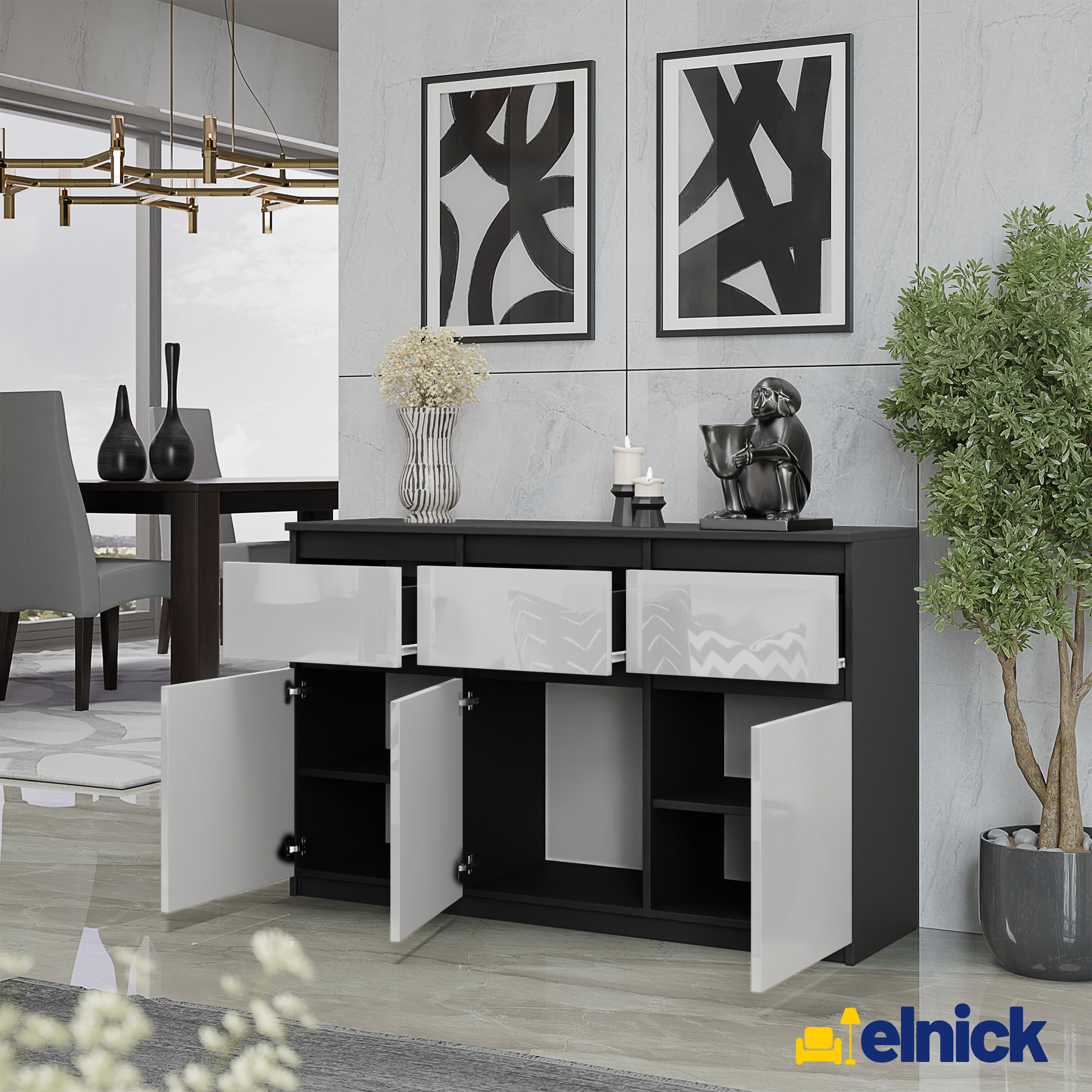 Die Kombination aus Anthrazit und weißem Glanz verleiht diesem Sideboard eine moderne und frische Ausstrahlung. Der glänzende Weißton verleiht dem Schrank eine edle und ansprechende Optik. Ihre bestehende Einrichtung wird perfekt ergänzt, da dieser Farbmix zu verschiedenen Hintergründen passt und sich nahtlos einfügt. Das Highboard NOAH wird zum Highlight in Ihrem Raum und verleiht ihm einen Hauch von Eleganz. Genießen Sie die Kombination aus Stil und Funktionalität dieses Möbelstücks!