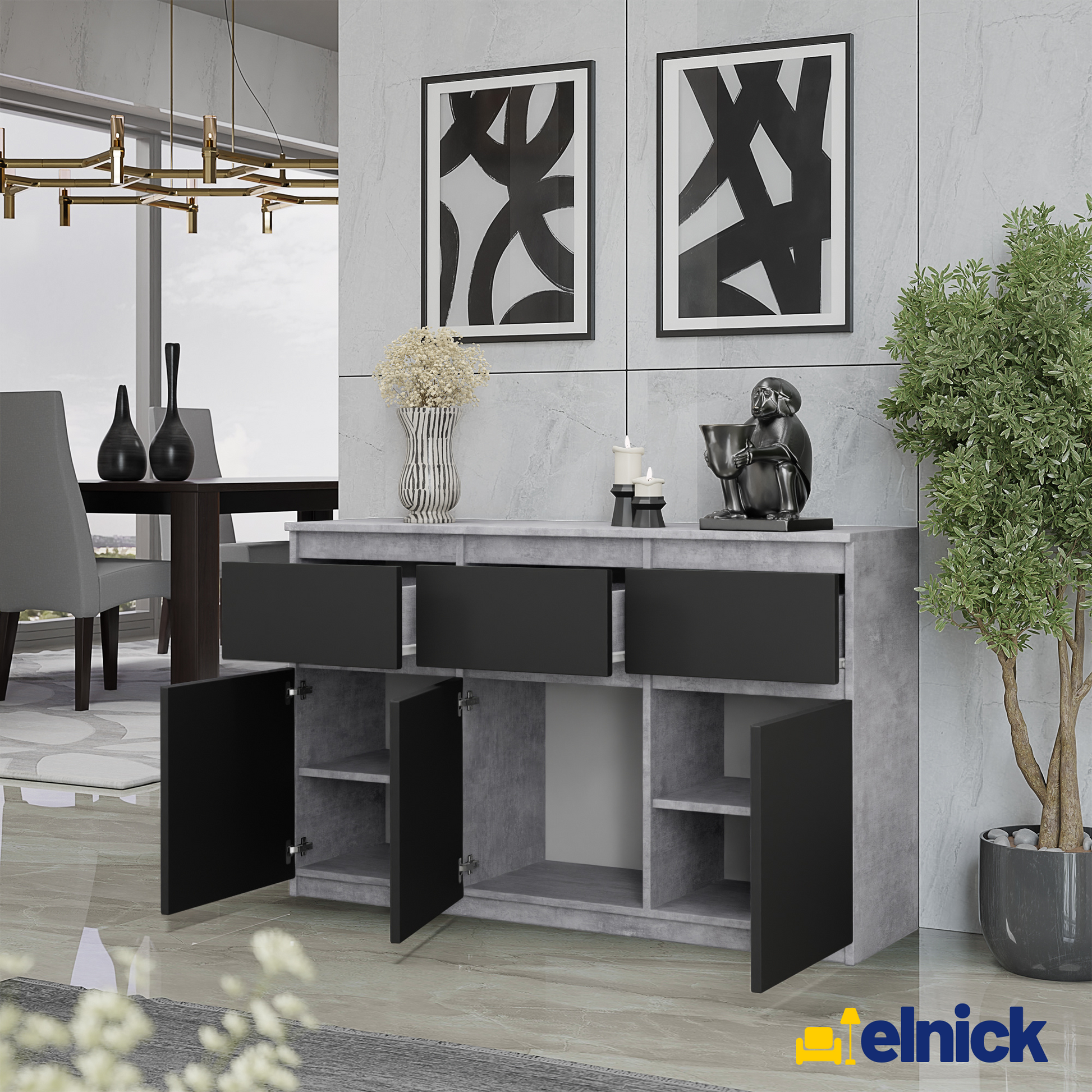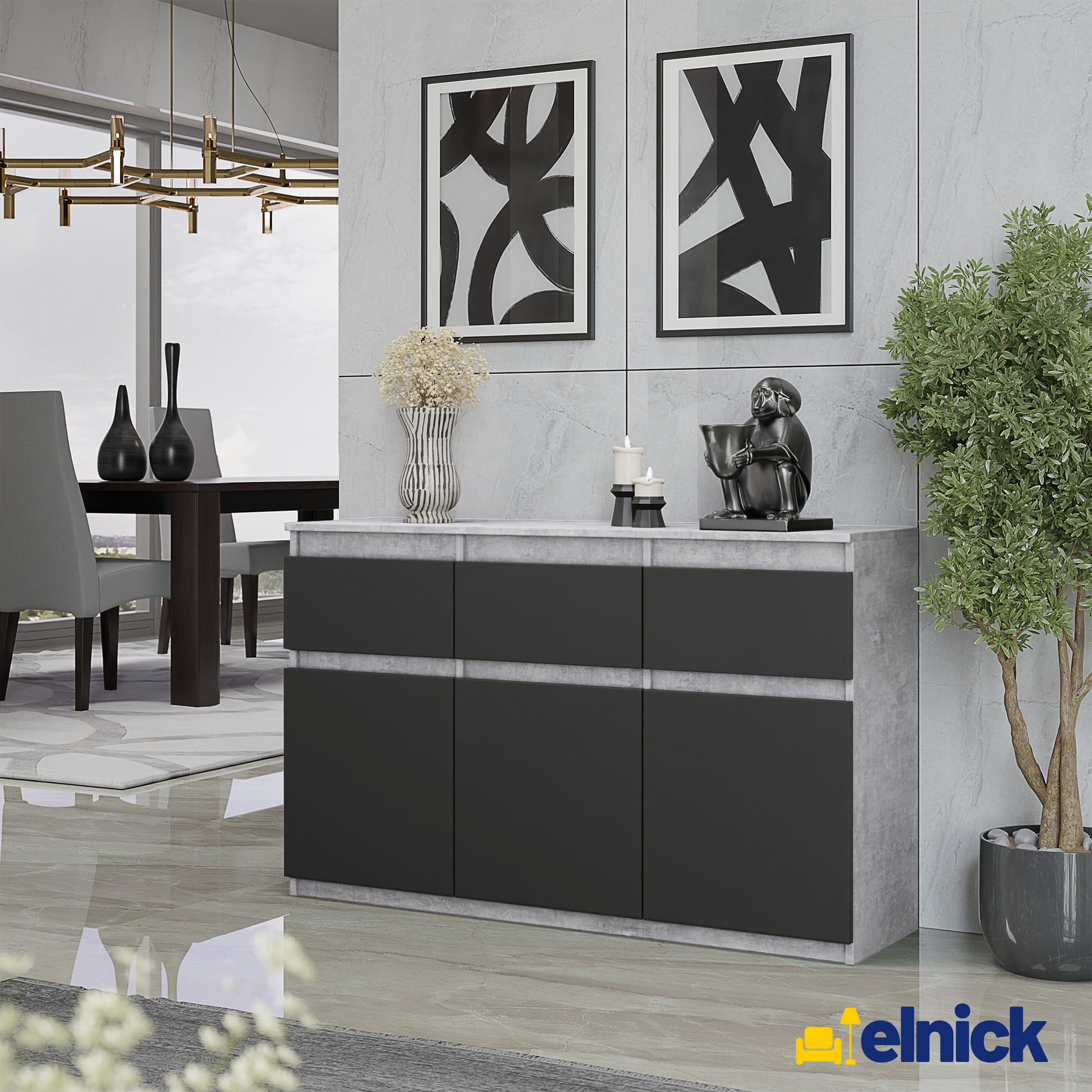 NOAH - Kommode / Sideboard mit 3 Schubladen und 3 Türen - Beton-Optik / Anthrazit Grau