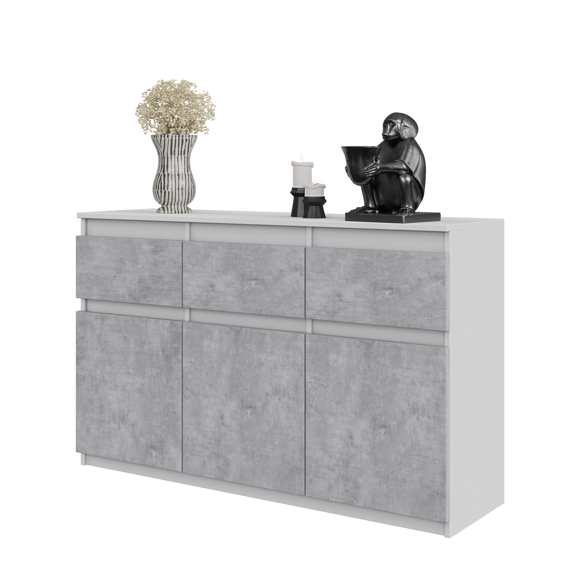 Sideboard NOAH 3D mit 3 Schubladen - Weiß Matt und Beton-Optik